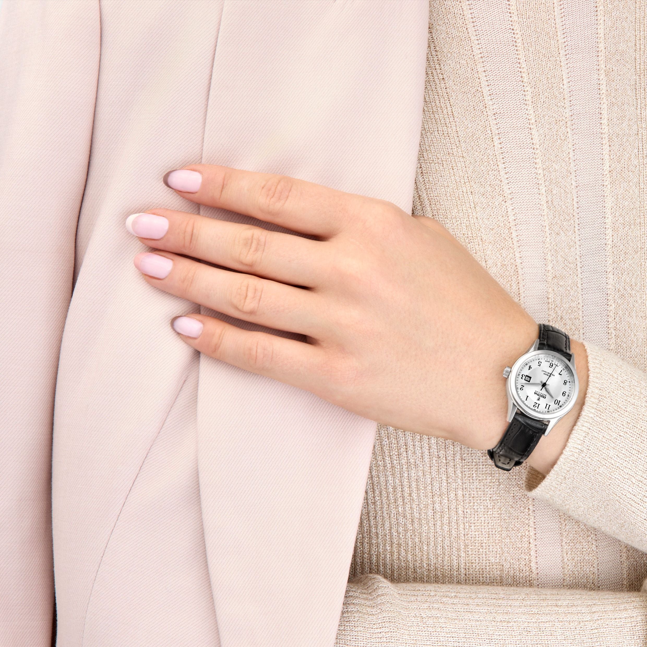 Festina swiss made watch silver gray leather strap, women's