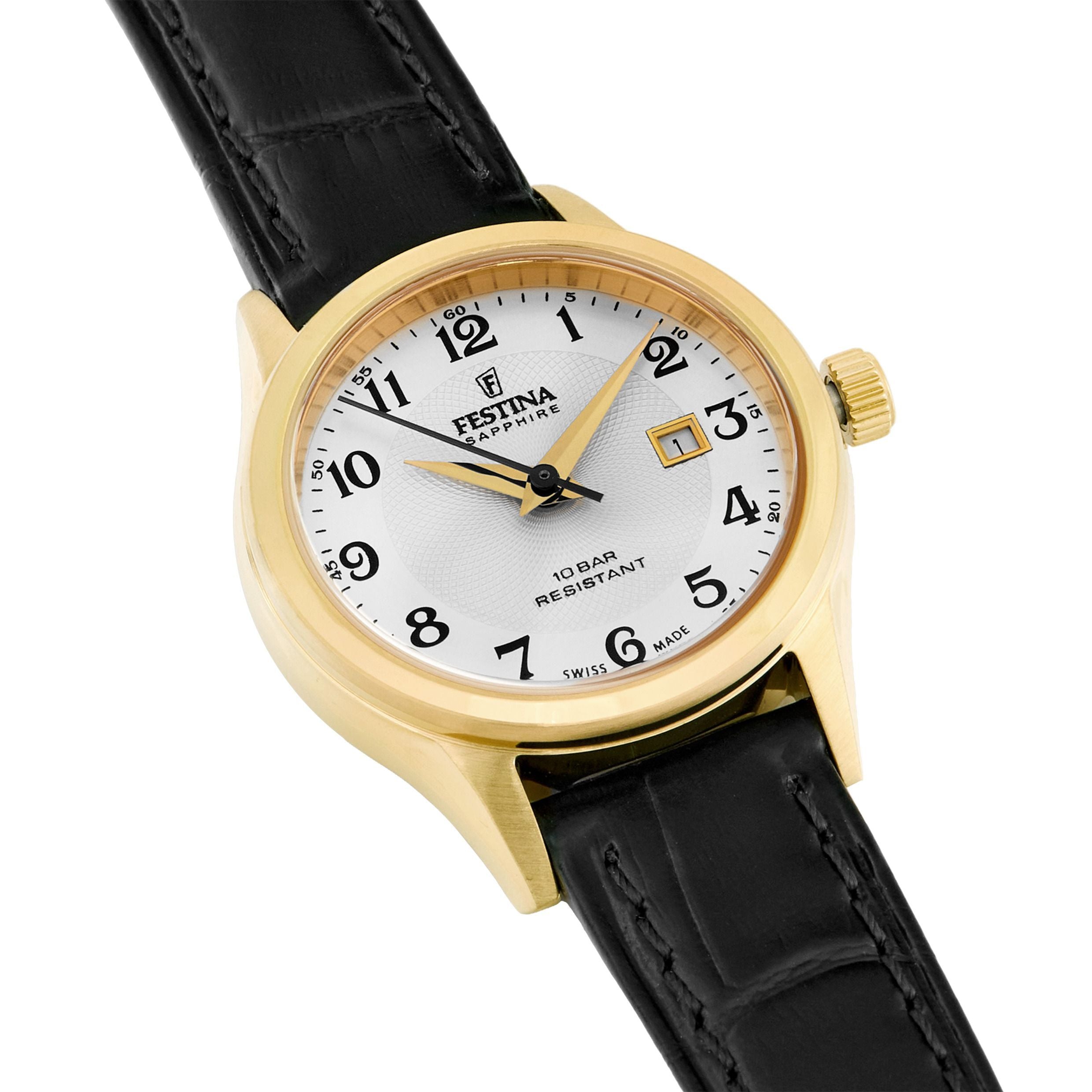 Festina watch silver leather strap, women's