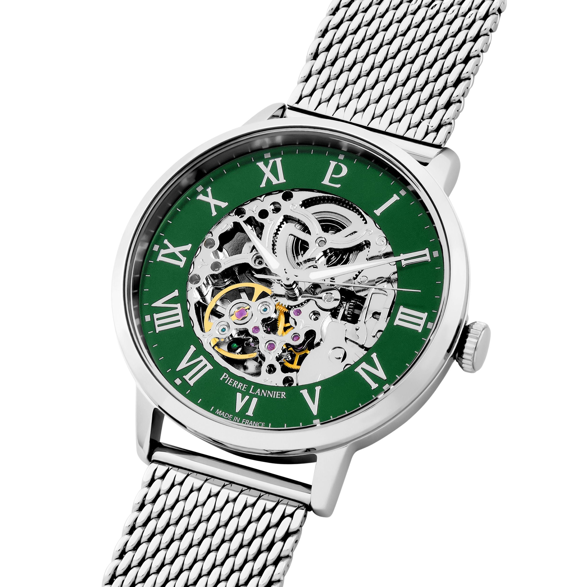 AUTOMATIC Men's Watch Silver Dial Green Milanese Steel Bracelet Silver 20 MM