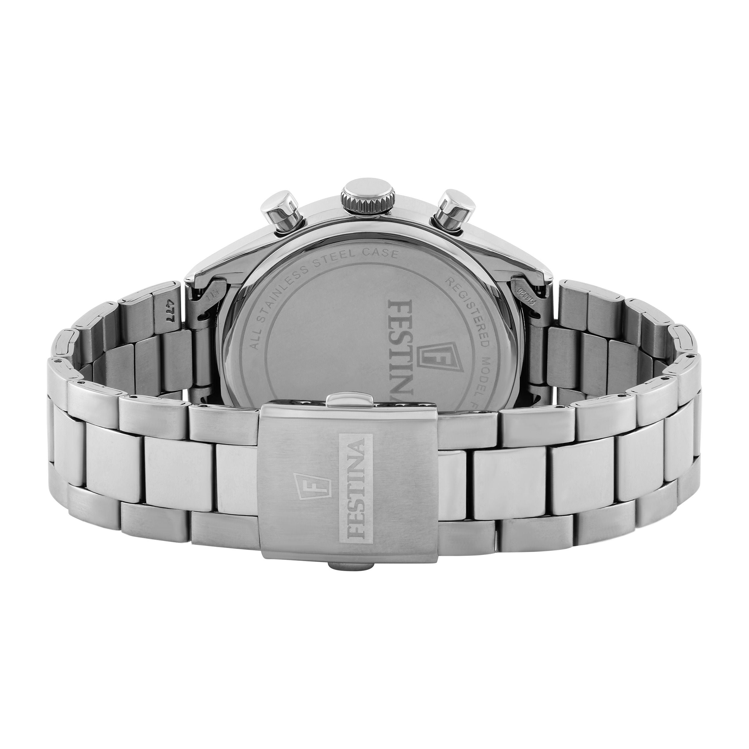 Festina men's watch F16820/A with a stainless steel case and a mineral glass fitted with a stainless steel bracelet.
