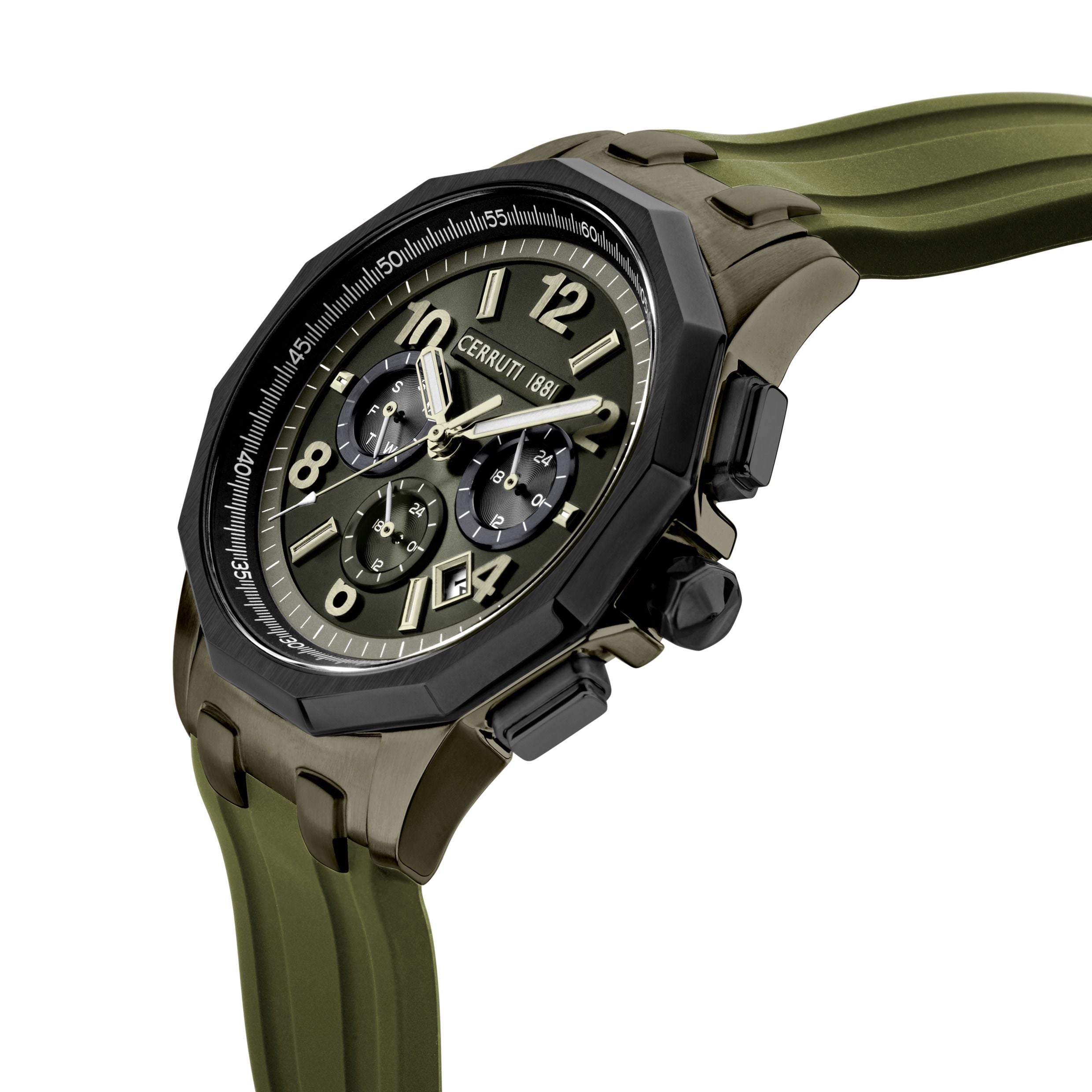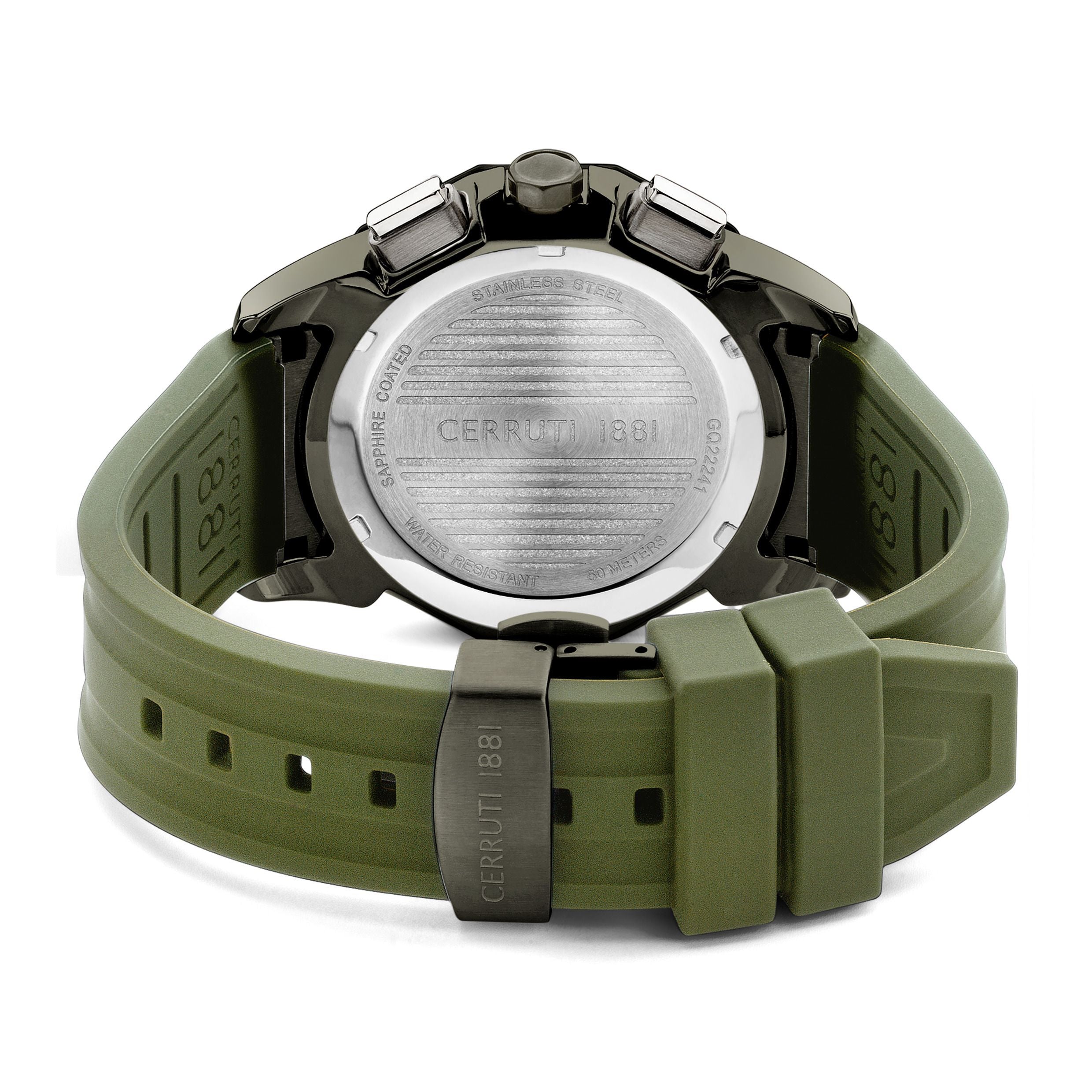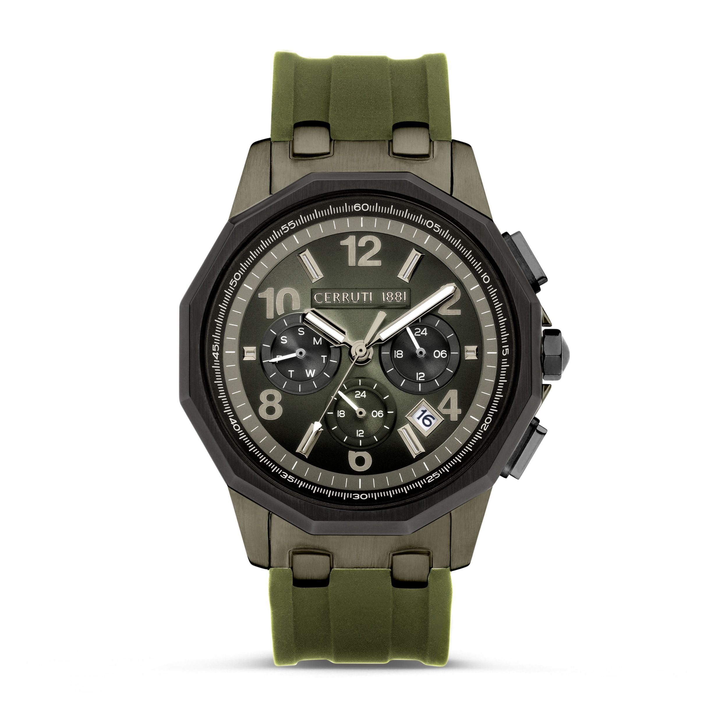 Elevate your style with the Function Watch Sport Molveno Clay Green by Cerruti 1881. Designed for the modern man, this multifunction watch features a striking clay green dial and a sturdy stainless steel case, all while ensuring exceptional durability with a 5 ATM water resistance. The sleek stainless steel band complements the bold color, making it perfect for both casual outings and formal occasions. Weighing just 105g, it’s lightweight and comfortable for all-day wear. Discover the perfect blend of sophistication and sportiness—this watch is a must-have accessory for any discerning gentleman. Dimensions: 45.5 x 53/STRAP:0 mm, Material: S. Steel