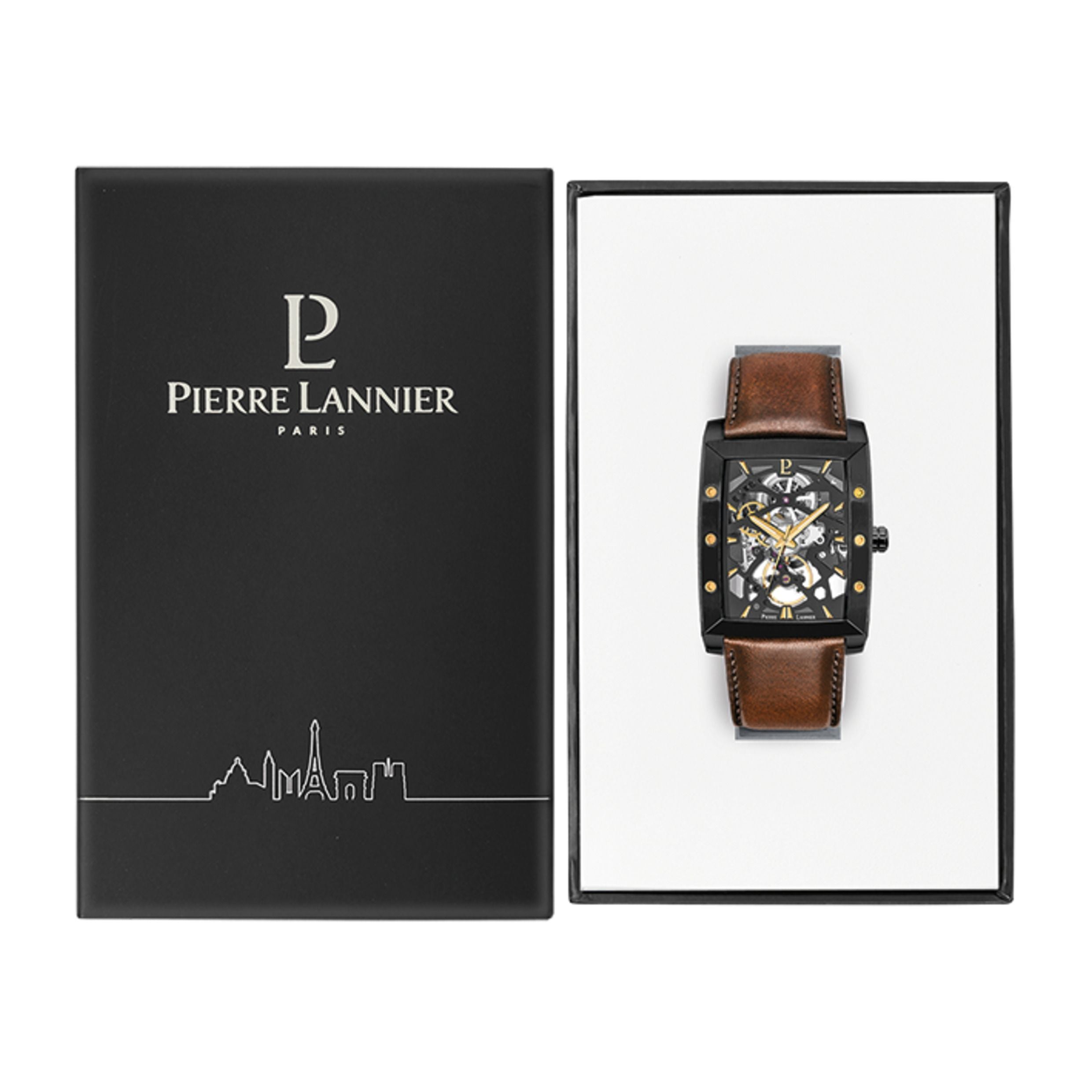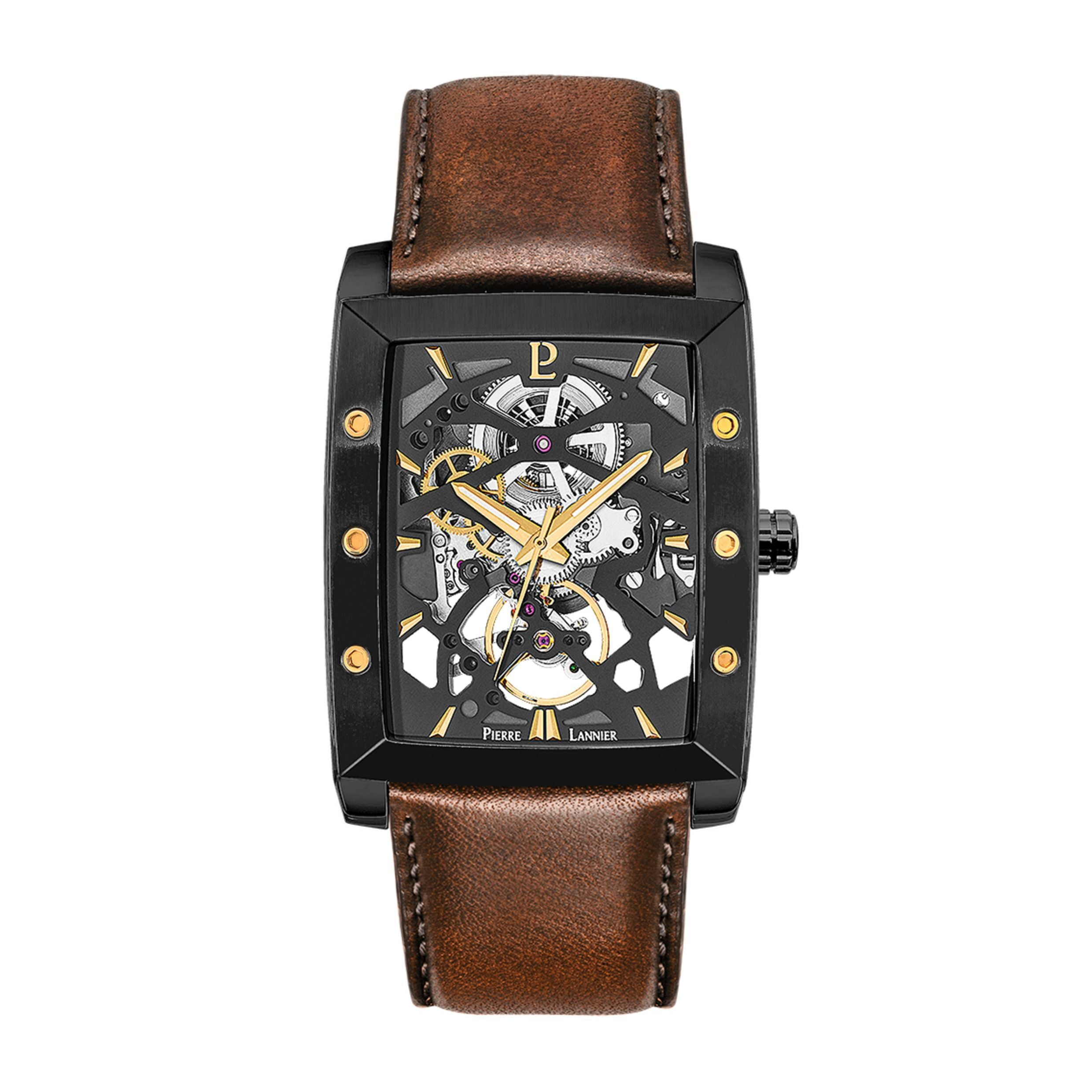 HECTOR Men's Watch Black Dial Brown Leather Strap