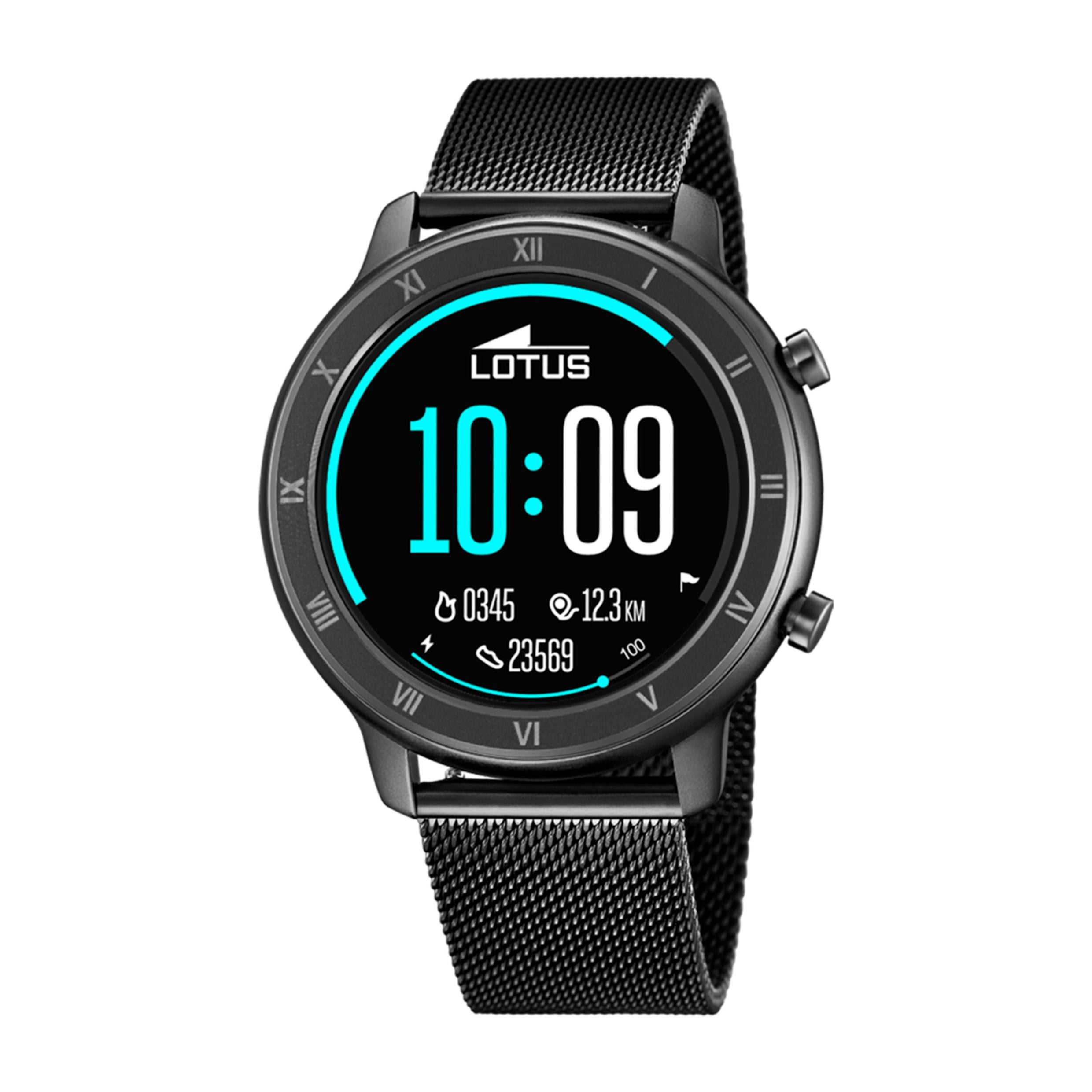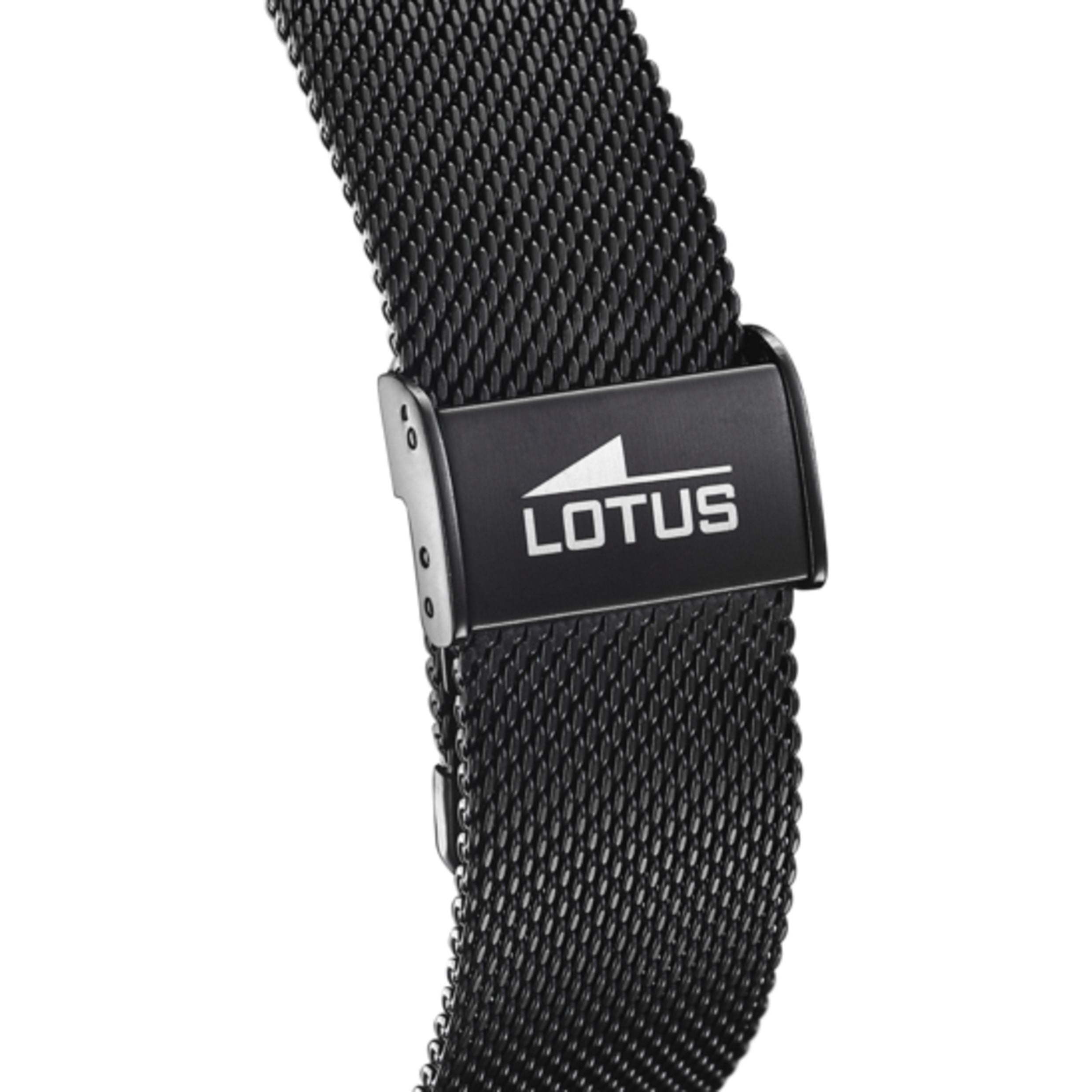 Montres Lotus pour homme en acier inoxydable et zinc. Les montres Lotus offrent des designs exclusifs et de nouvelle génération pour une clientèle contemporaine, urbaine et moderne. Dimensions : diamètre 43,5 mm, bracelet 200 mm, matériau : acier inoxydable.