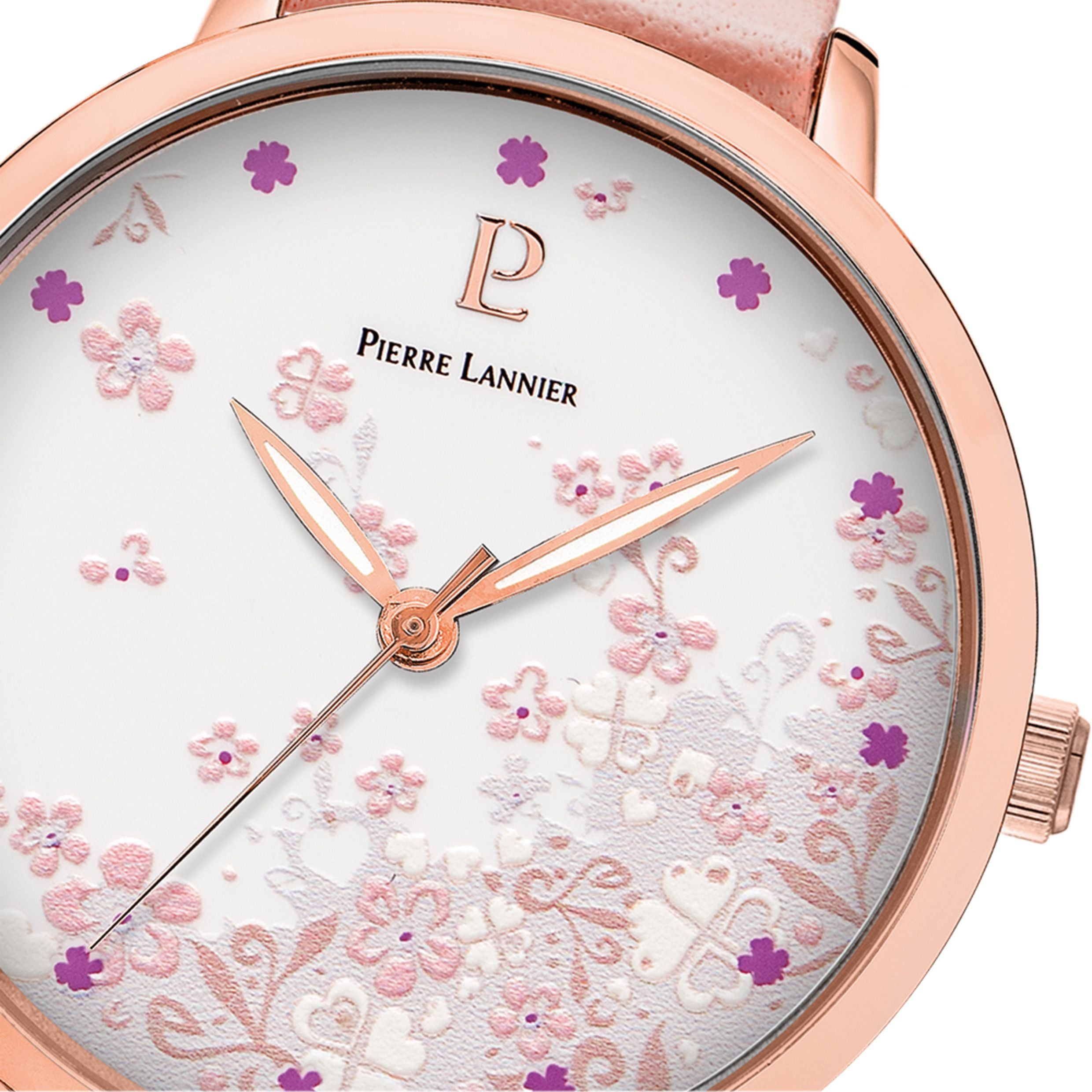 Laissez-vous séduire par la montre Tallia pour femme. Son boîtier de 36 mm en acier inoxydable poli et or rose abrite un cadran blanc orné de fleurs, d'index trèfle et d'aiguilles luminescentes en or rose. Dotée d'un bracelet interchangeable en cuir rose, elle allie style et polyvalence. Étanche jusqu'à 30 mètres et garantie 2 ans. Dimensions : diamètre 36 mm / épaisseur du bracelet : 0 mm. Matières : acier inoxydable, cuir.